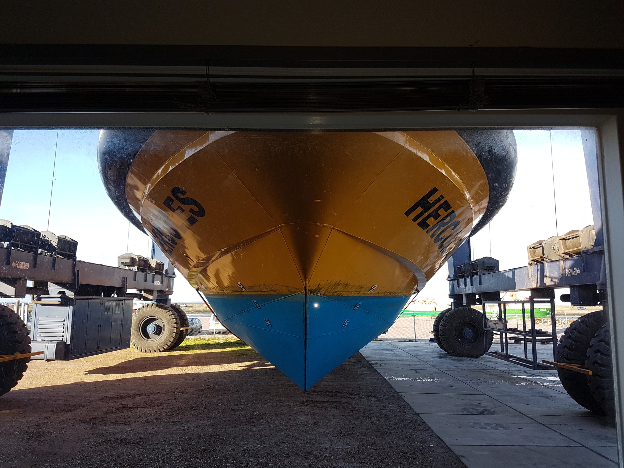 U型托抱船体,对船体无挤压