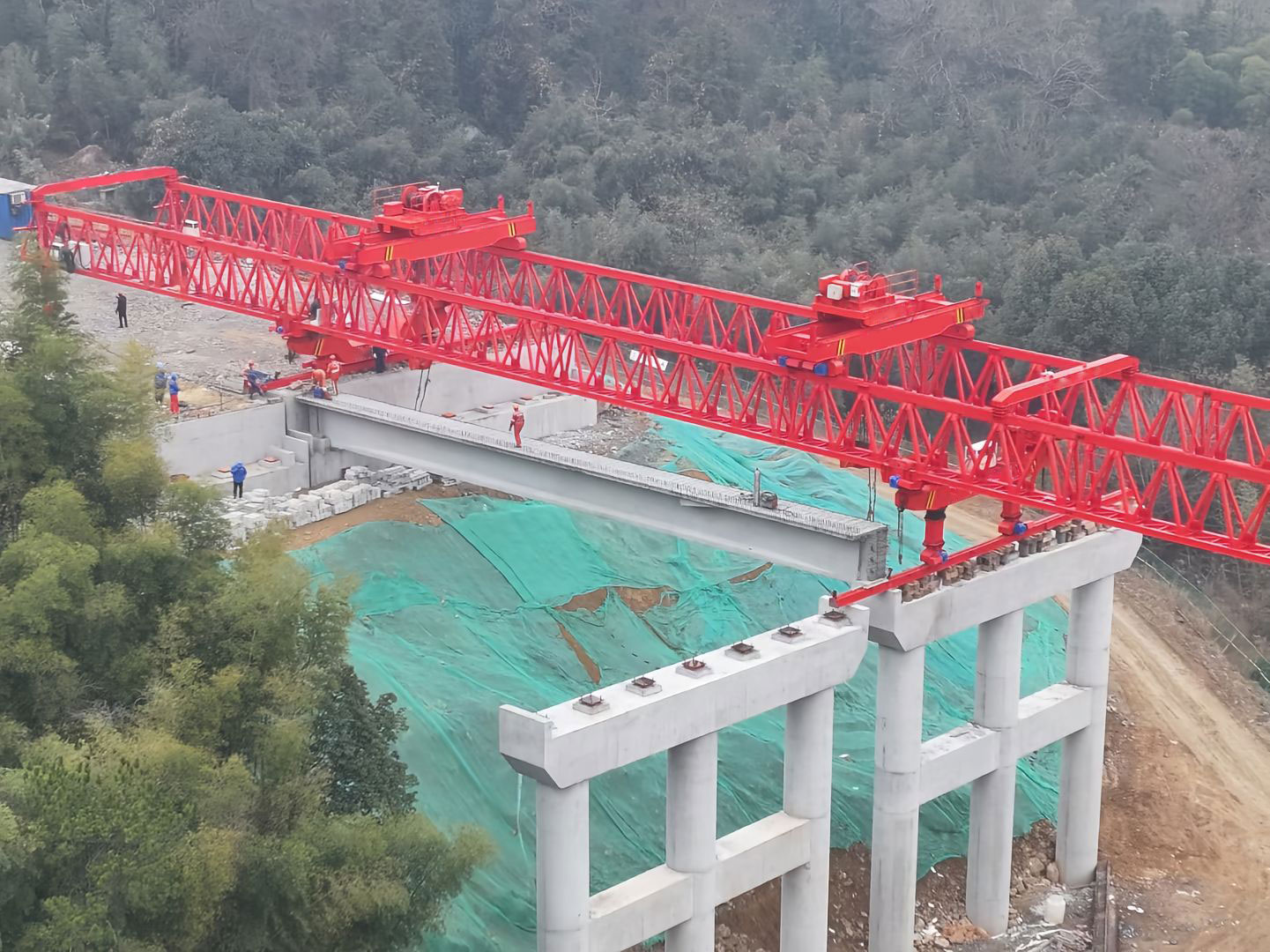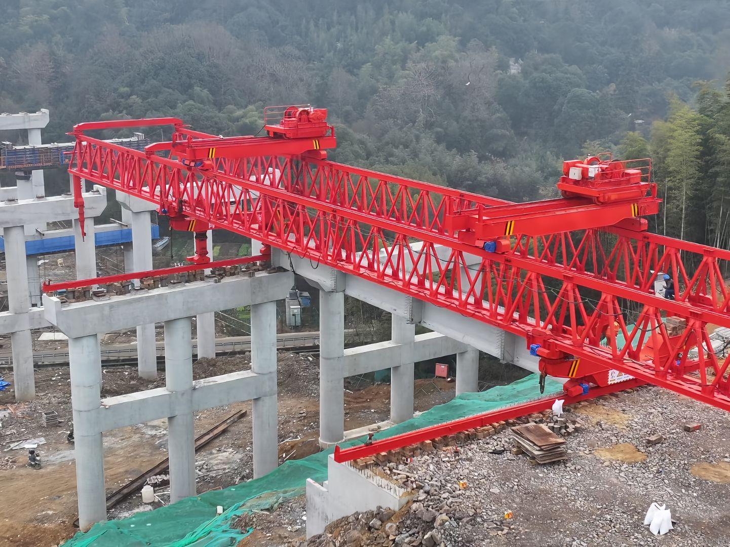架桥机是一种现代桥梁建设的重要工具,他可以用于架设的桥墩之间的预制水泥梁,钢梁,或者预制节段梁,并且在完成一跨的架设后,通过自身机构移动到下一跨继续进行工作。