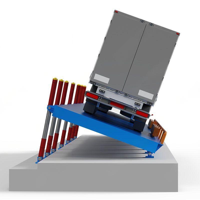 45°/55°液压翻板卸车平台可卸:沙石,稀土,废钢,木片、塑料、粮食、煤粉等。是一种现代化的物料卸载设备,只要倒车上去,可以自动直接卸料,省时省力省钱,高速安全可靠;卸车效率很高,粉尘少。此设备可适用于粮库、港口、各类仓库、资源回收,废钢电厂,加工厂对散状物料的自动卸载;同时也广泛用于化工、冶金、矿山以及一切有散装物料接收作业的单位和部门。